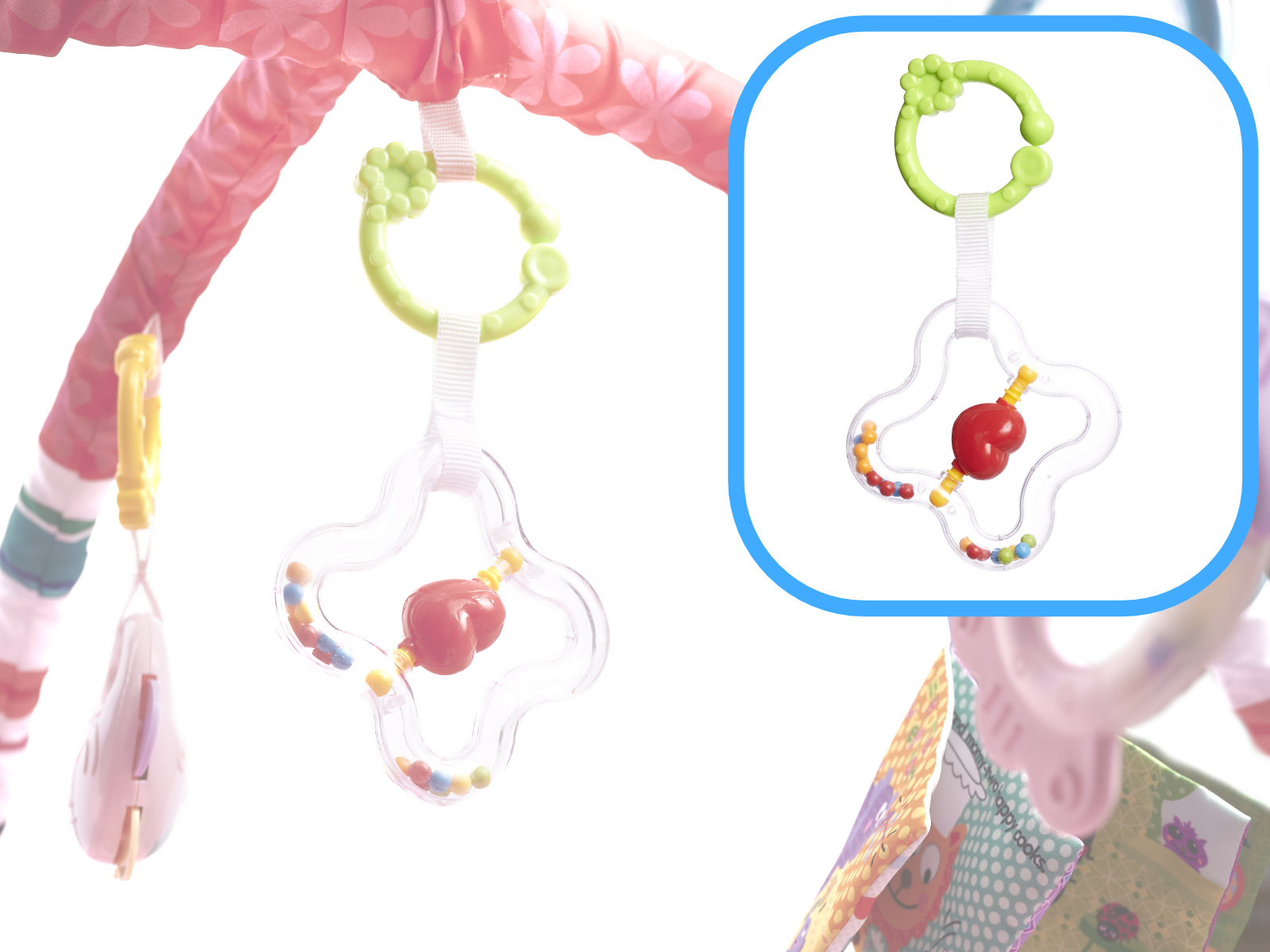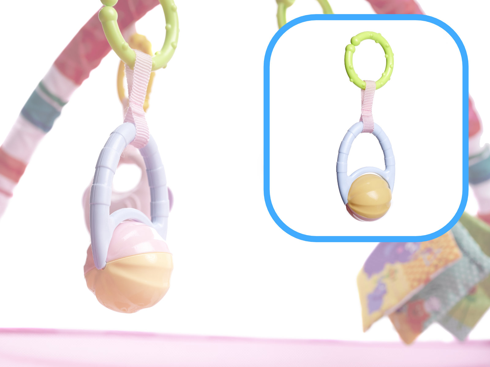 • Mata z zabawkami zawieszonymi na pałąkach– kolorowe zabawki zawieszone na pałąku będą przyciągały uwagę maluszka i motywowały do ćwiczenia i wzmacniania mięśni karku, rąk i nóg. Dodatkowo  świetnie sprawdzi się podczas pierwszych prób samodzielnego siadania.